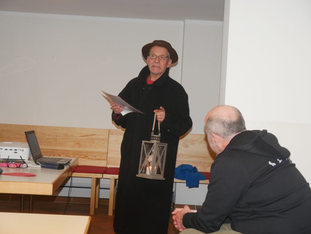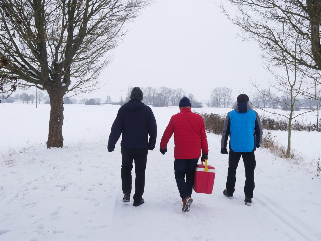Die Bibelarbeit am Sonnabend zeigte anhand unterschiedlicher Texte die Schöpferkraft Gottes und brachte in kleinen Gruppen viele Erfahrungsbezüge der Männer ins Gespräch. Am Nachmittag ging es auf Wanderung durch die Winterlandschaft des Muldentals, inclusive stärkender Kaffee-Kuchen-Pause. Der Abend bot Raum für einen Quiz, bildbezogenes Nachdenken über das Heilige, einen andächtigen Abschluss mit dem Nachtwächter und Gelegenheit zum Gespräch beim Abendgetränk.