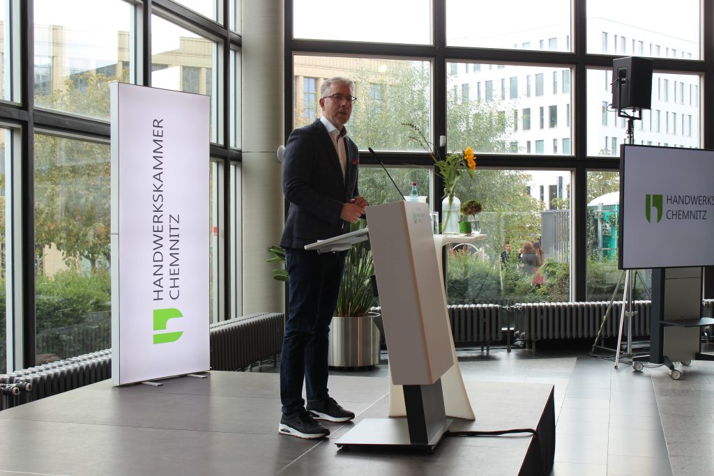 Der von der Handwerkskammer organisierte Teil des Tages setzte sich nach Ende des Gottesdienstes mit Führungen durch die Stadt, im Opernhaus und an der Orgel der St. Petrikirche fort. Nach spannenden Eindrücken aus Geschichte und Gegenwart versammelten sich die Gäste zum Schlussteil des Tages im Kongresszentrum der Stadt. Bei Grußworten des Kammerpräsidenten und des Finanzbürgermeisters wurden noch einmal die Fragen des gestalteten Zusammenhalts aufgegriffen. Bei Bandoneonklängen und Tanzeinlagen – ganz im Gepräge der Kulturhauptstadt 2025 – hatten alle die Gelegenheit, sich zu stärken. Speisen und Getränken wurden von Preisträgern der “Genussregion Chemnitz” präsentiert und bildeten somit auch noch kulinarisch einen Höhepunkt des Tages.